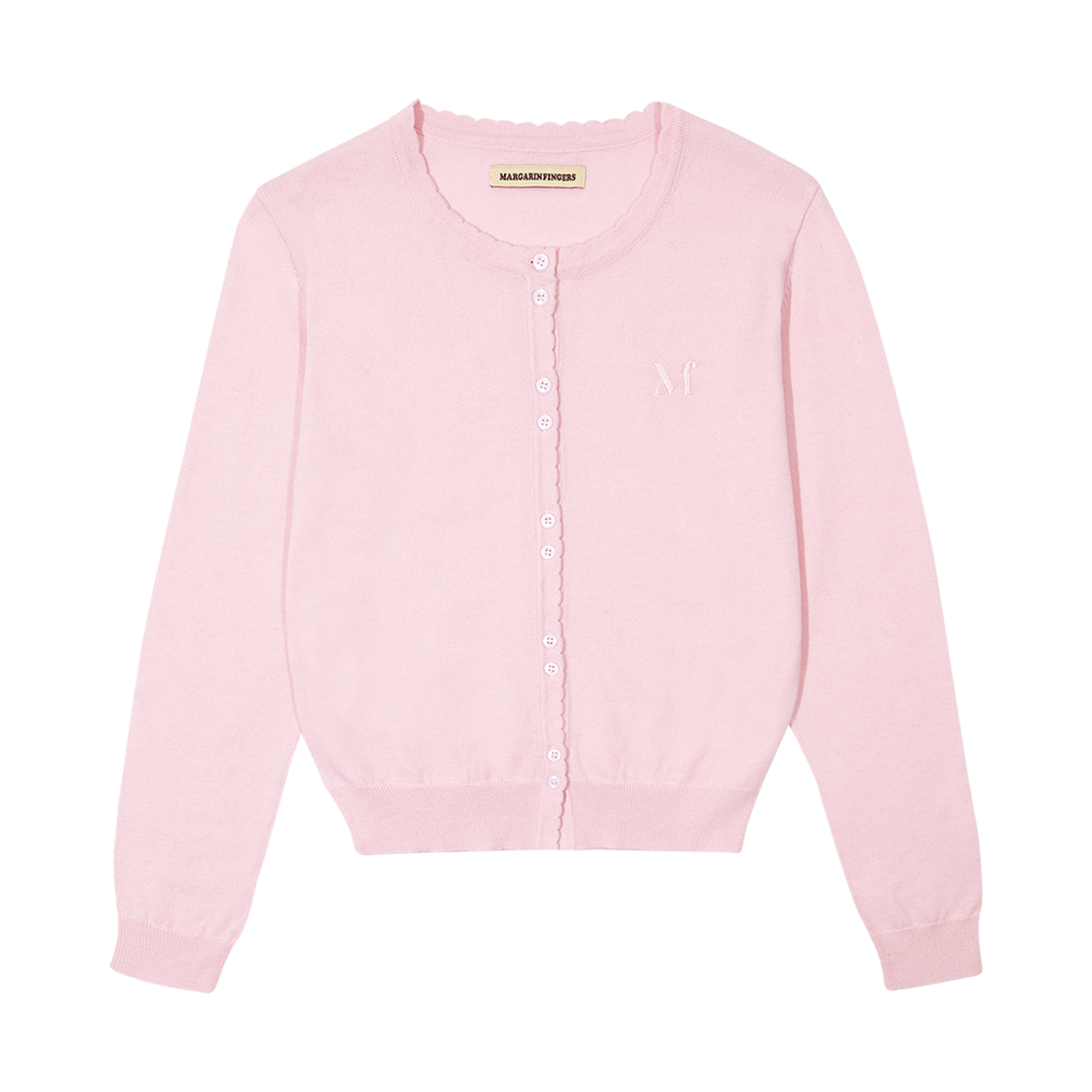 마가린핑거스 로고 스캘럽 가디건 라이트 핑크