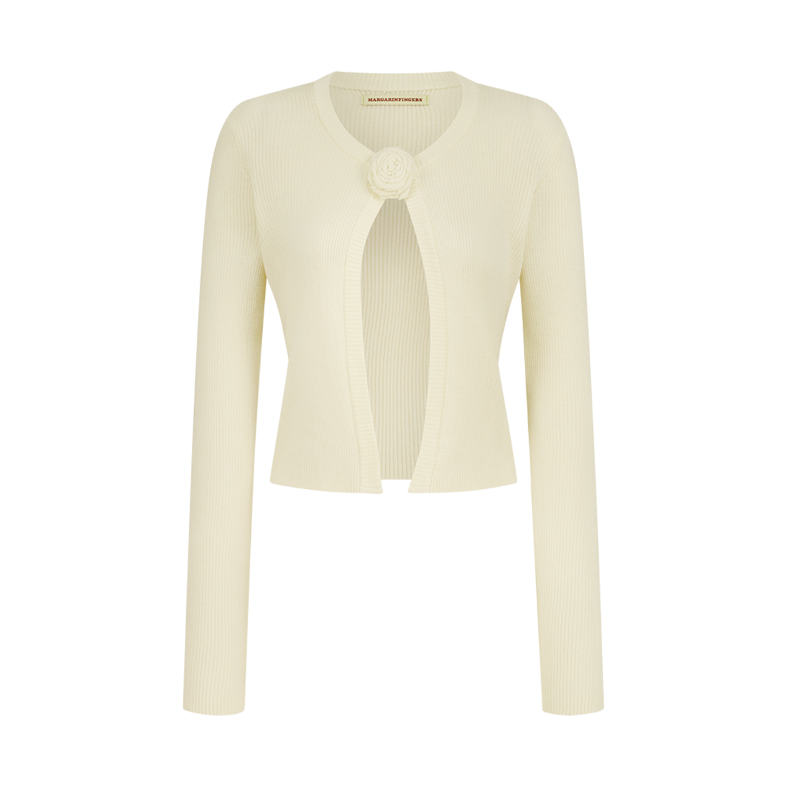 마가린핑거스 로즈 코사지 가디건 라이트 옐로우