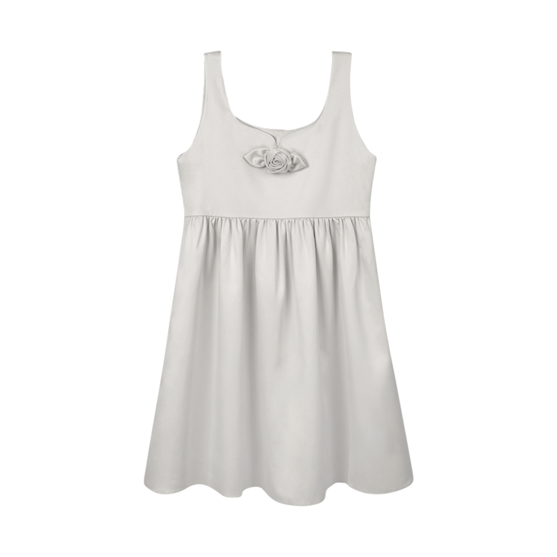 마가린핑거스 로즈 코사지 새틴 미니 드레스 라이트 그레이