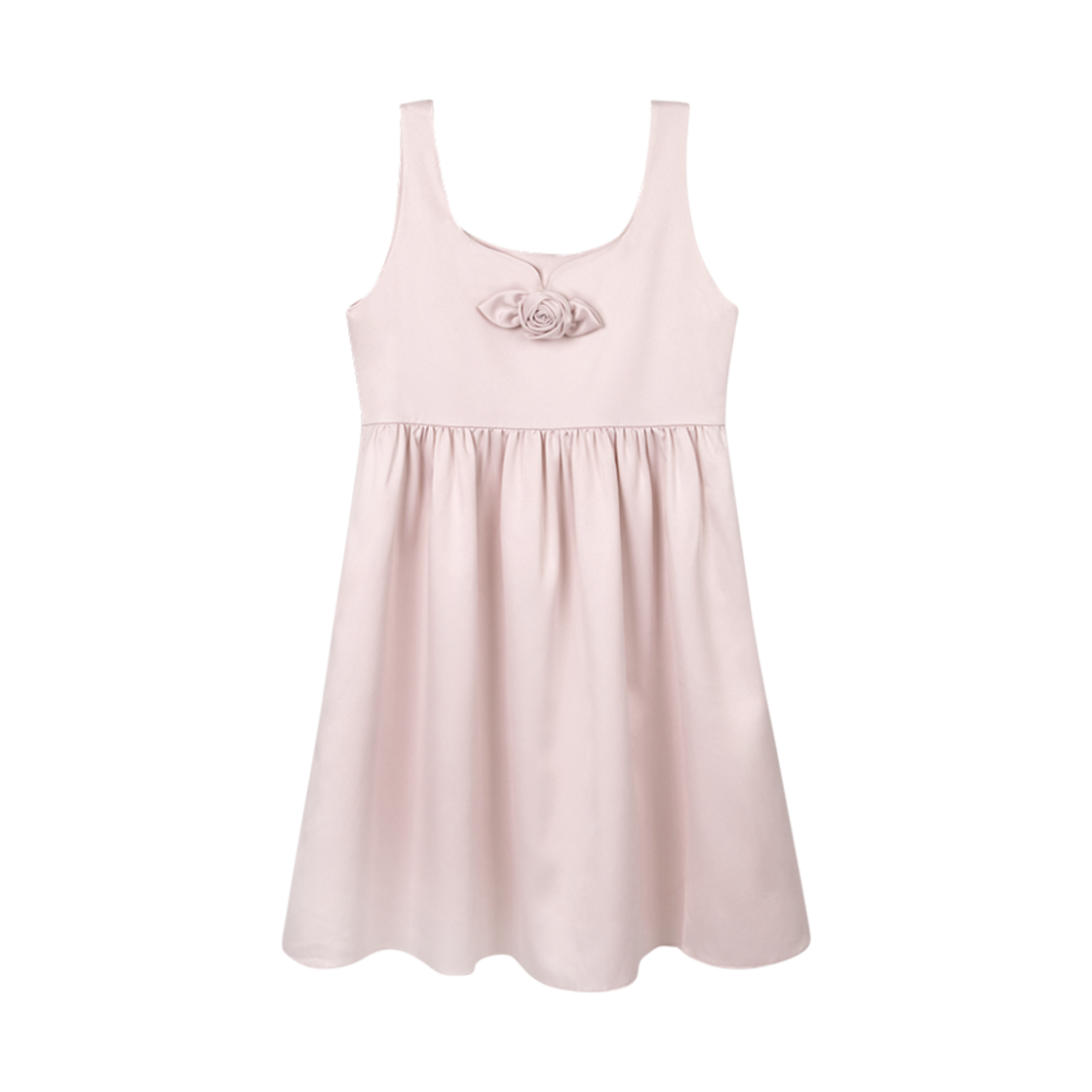 마가린핑거스 로즈 코사지 새틴 미니 드레스 라이트 핑크