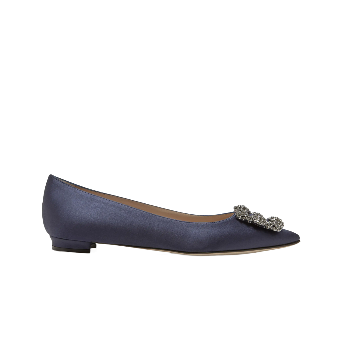 (W) 마놀로 블라닉 한기시플랫 사틴 쥬얼 버클 펌프스 블루