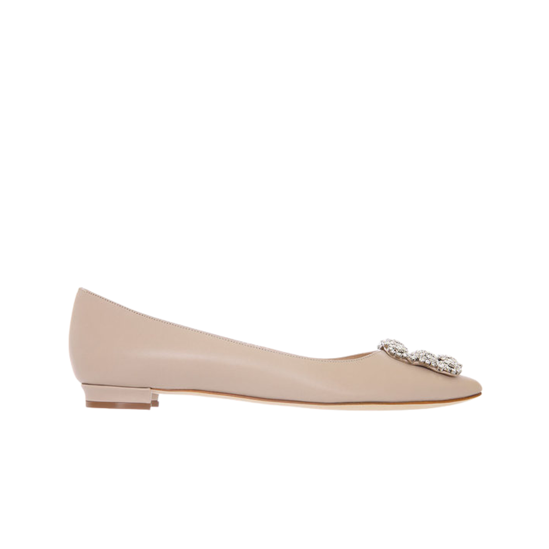 (W) 마놀로 블라닉 한기시 카프 레더 쥬얼 버클 플랫 펌프스 누드