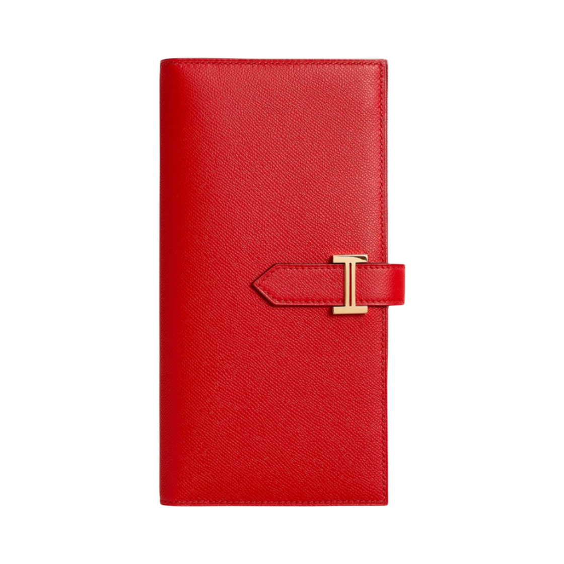 에르메스 베안 지갑 마담 & 골드 하드웨어 루즈 드 꾀흐