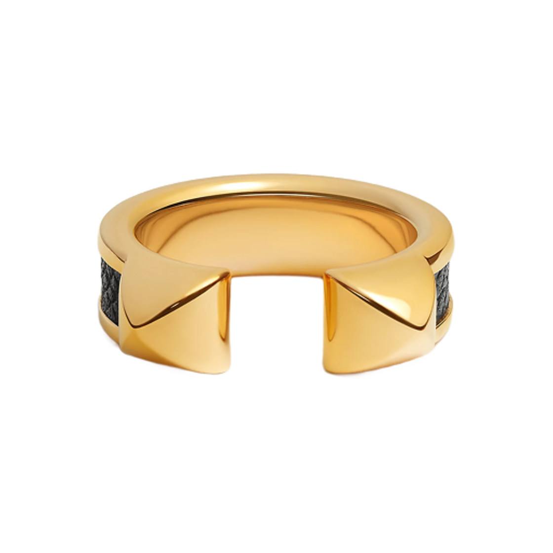(W) 에르메스 아테나 더블 스터드 링 마담 카프스킨 메탈 & 페르마브라스 하드웨어 누아