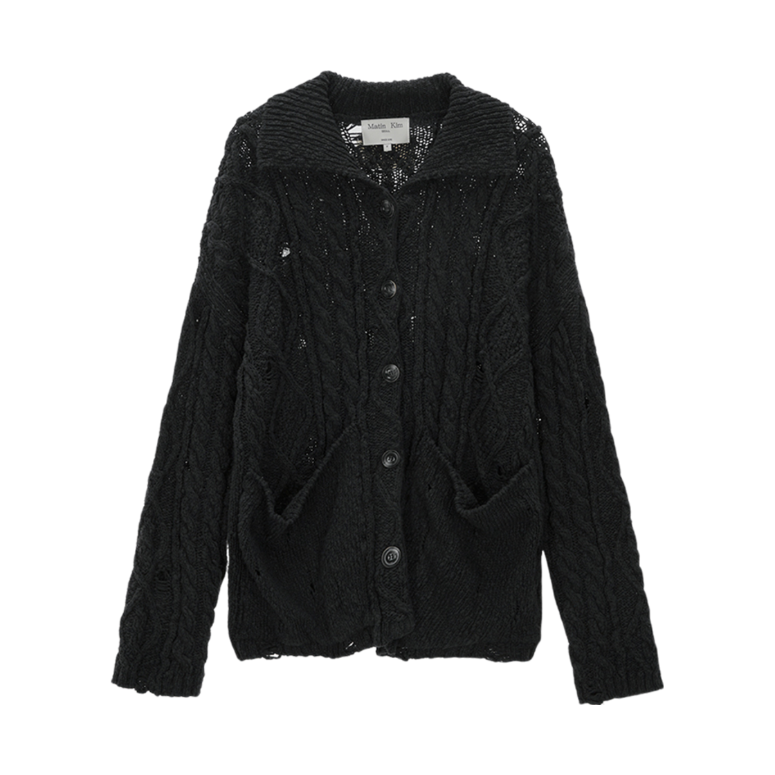 (W) 마뗑킴 데미지 케이블 가디건 차콜