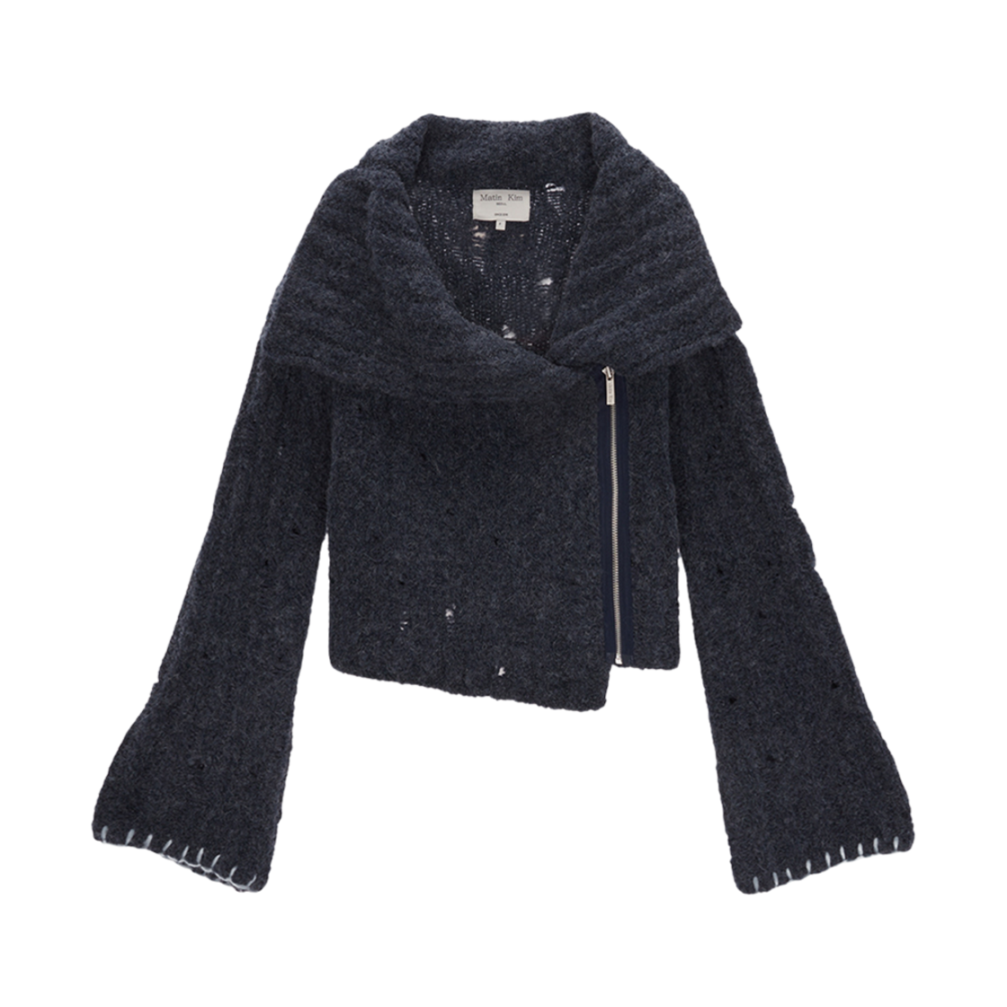 (W) 마뗑킴 그라데이션 니트 집 업 가디건 네이비