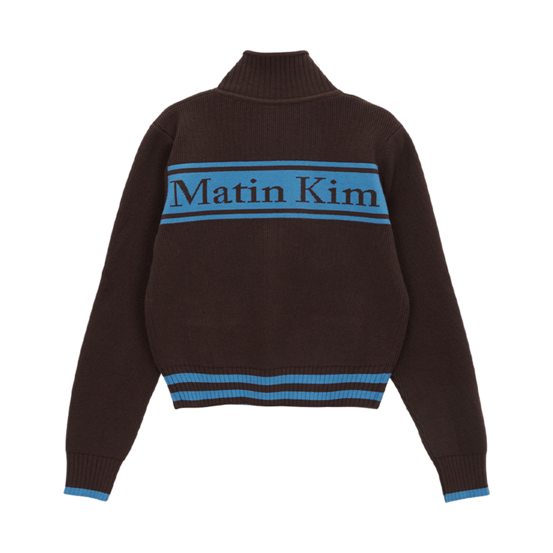 마뗑킴 하이 넥 래글런 니트 집업 다크 브라운