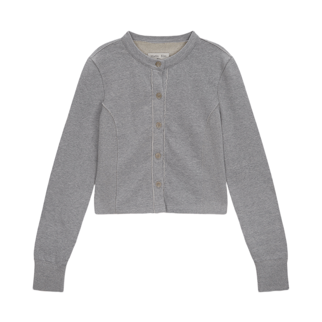 마뗑킴 펀칭 라인 포인트 라운드 넥 가디건 그레이