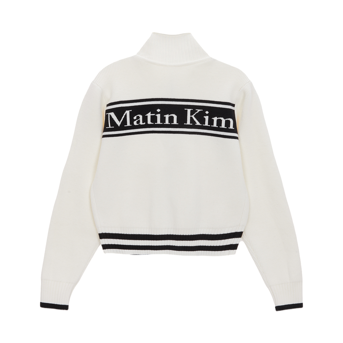(W) 마뗑킴 하이 넥 슬리브 로고 니트 가디건 아이보리