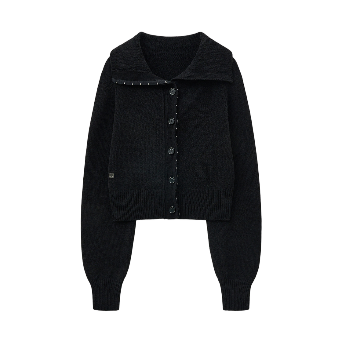 마뗑킴 펀칭 라인 포인트 라운드 넥 가디건 블랙