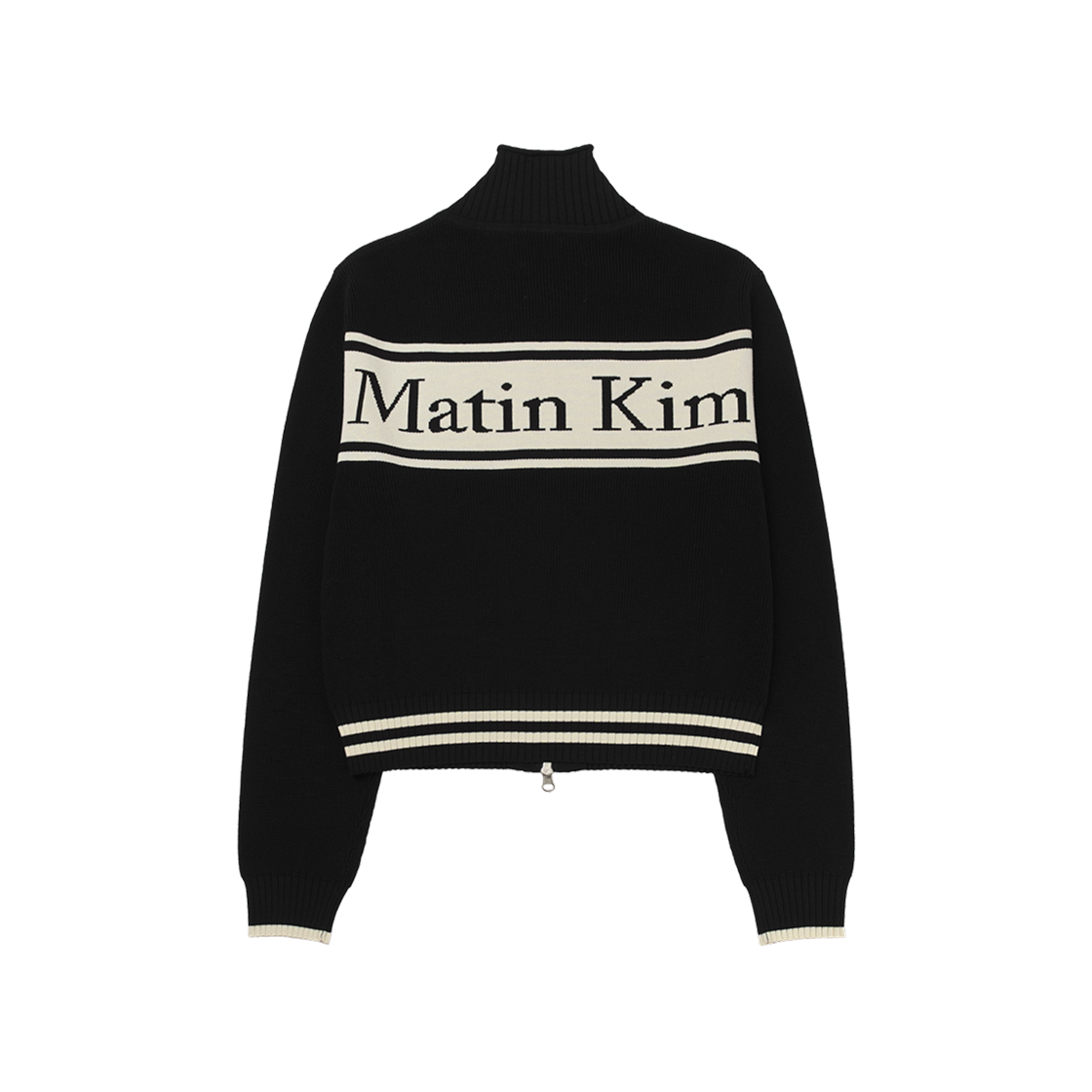 (W) 마뗑킴 하이 넥 슬리브 로고 니트 가디건 블랙
