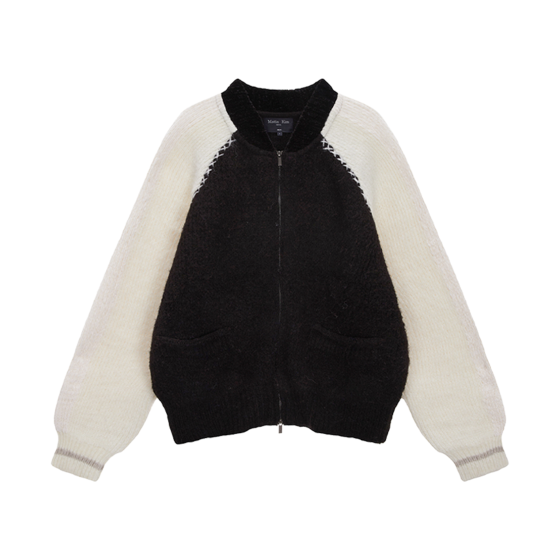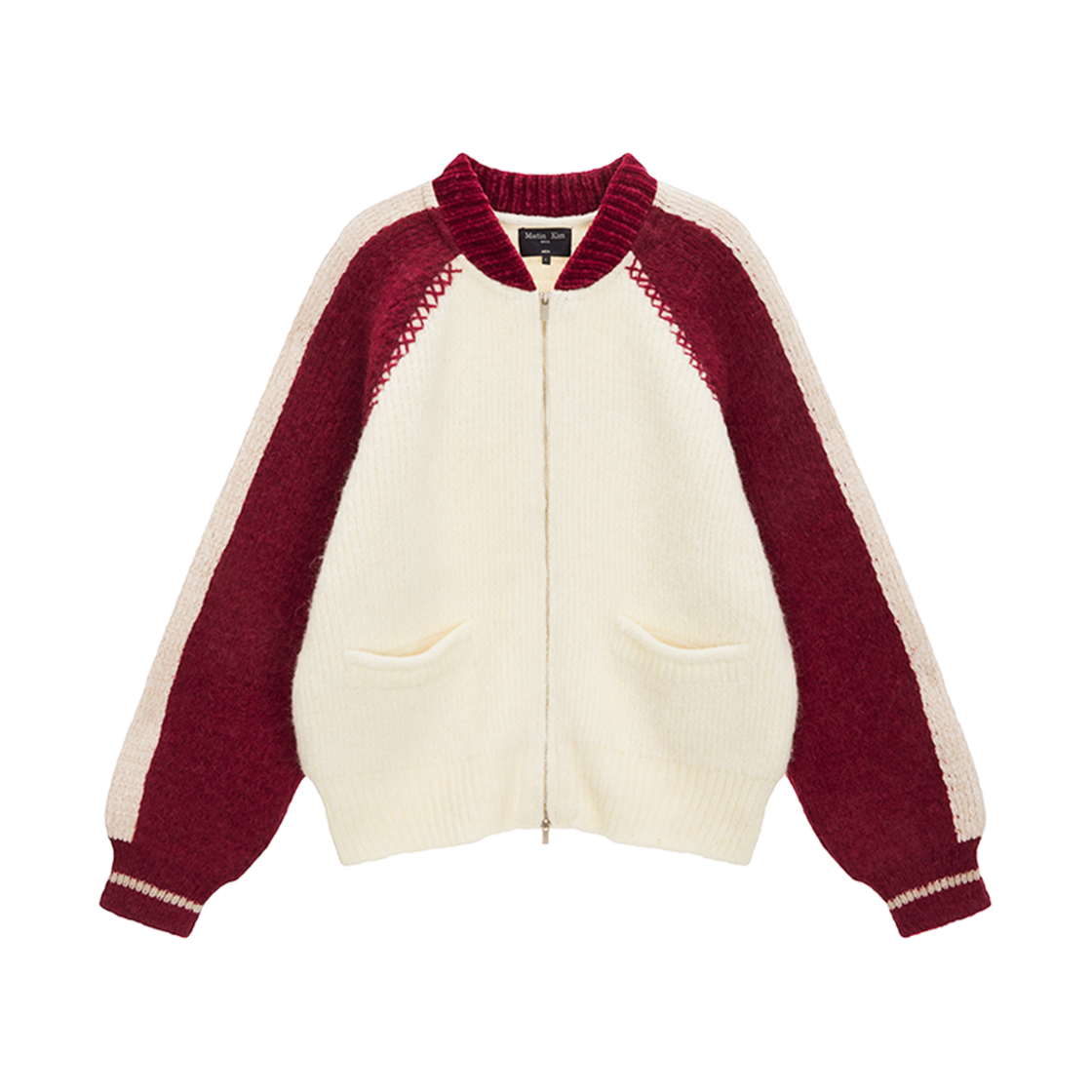 마뗑킴 하이 넥 래글런 니트 집업 아이보리