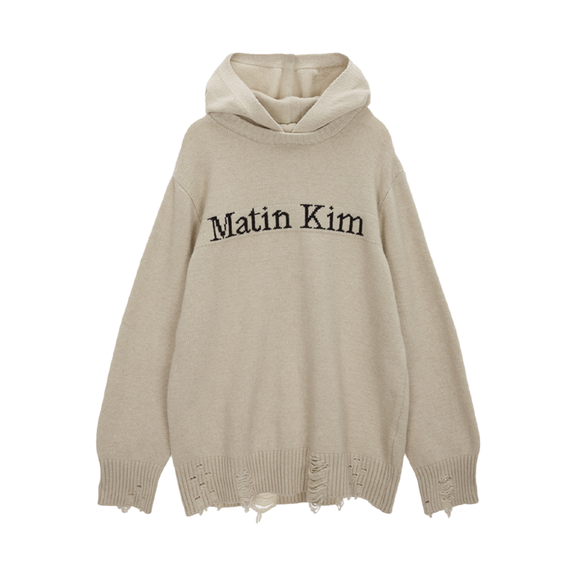 (W) 마뗑킴 데미지 로고 니트 후드 베이지