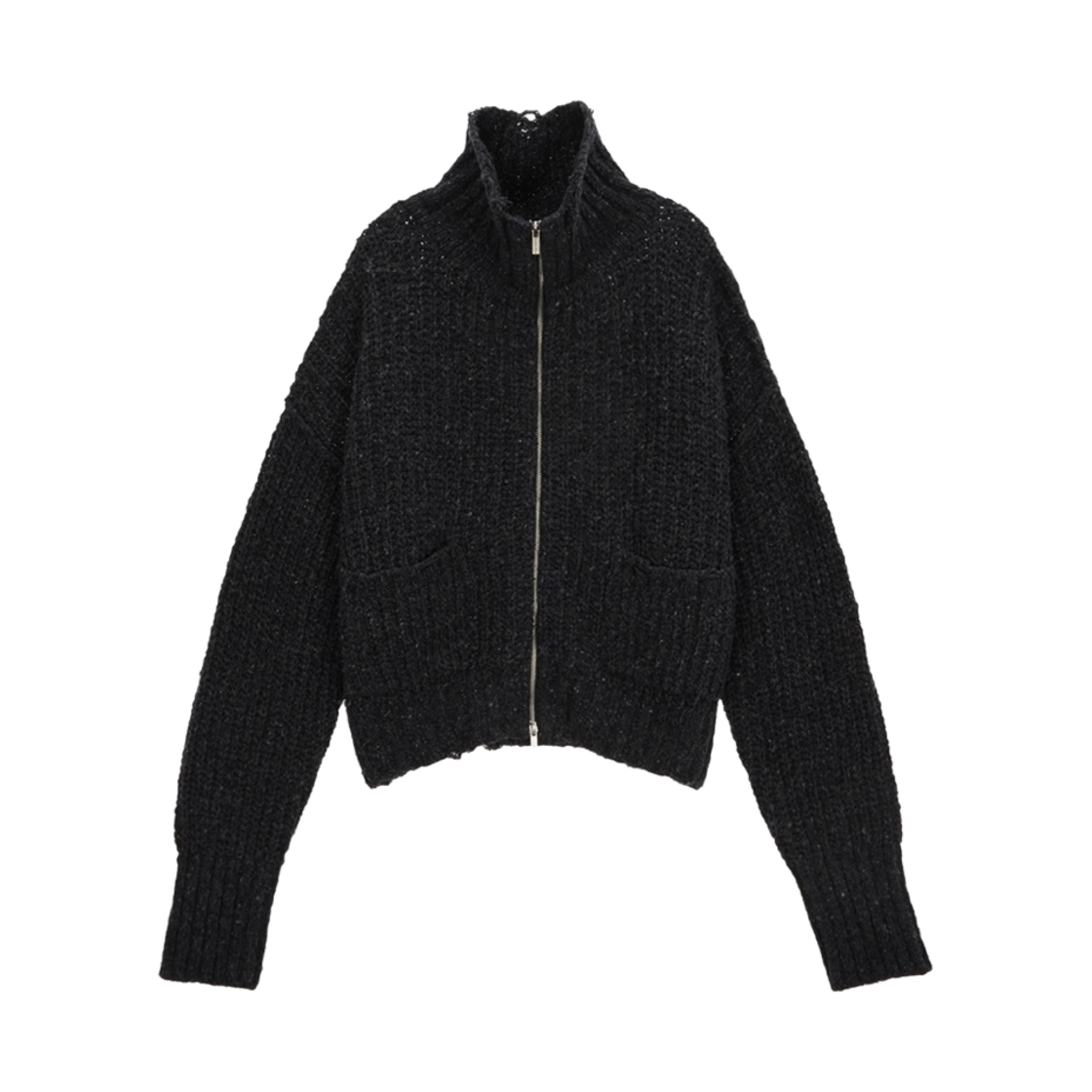 (W) 마뗑킴 데미지 립드 하이 넥 집업 차콜