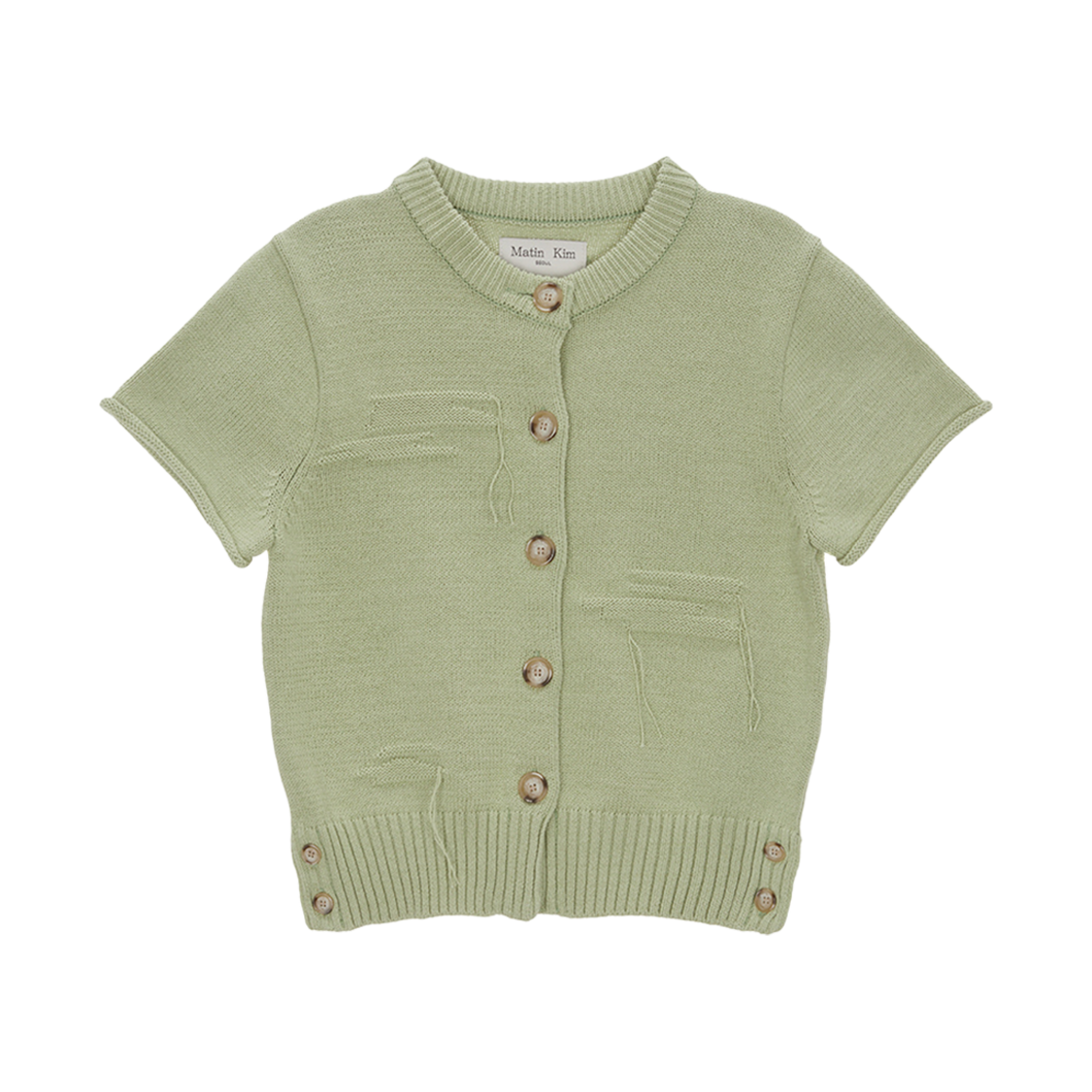 (W) 마뗑킴 데미지 라운드 하프 가디건 라이트 그린