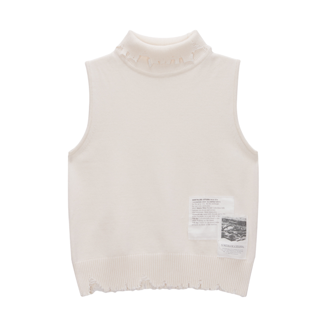 (W) 마뗑킴 데미지 슬리브리스 터틀넥 니트 탑 아이보리
