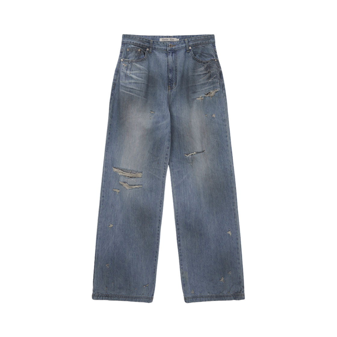 (W) 마뗑킴 헤비 워시드 데미지 데님 팬츠 라이트 블루