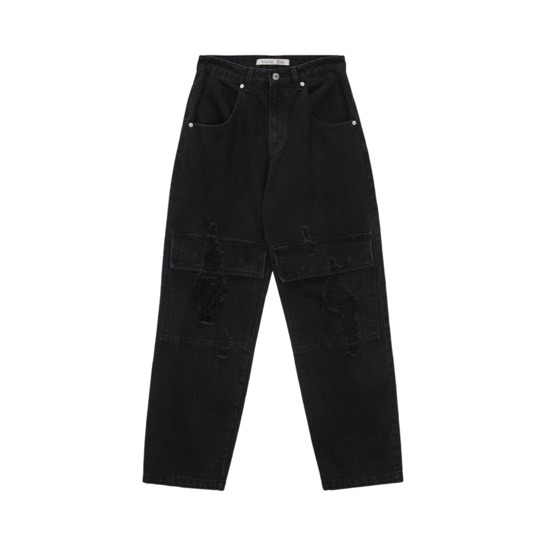 (W) 마뗑킴 니 포켓 데미지 데님 팬츠 블랙