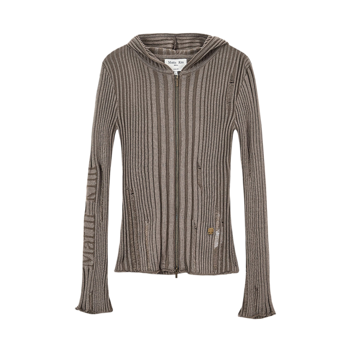 (W) 마뗑킴 로고 포인트 데미지 슬림 후디 가디건 카키 브라운