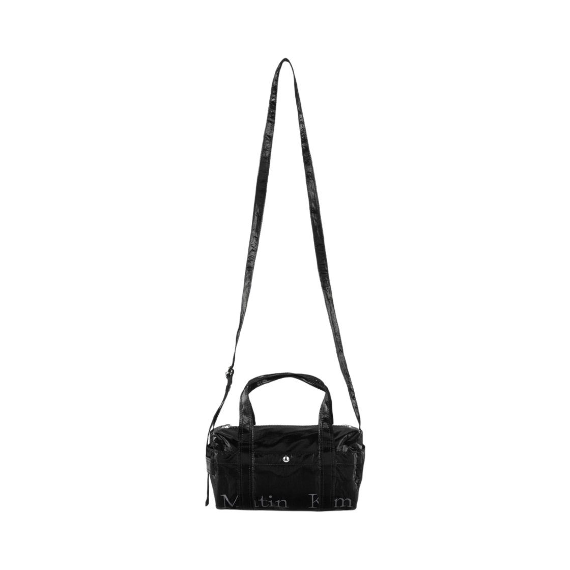 마뗑킴 글로시 로고 스포티 미니 더플백 실버