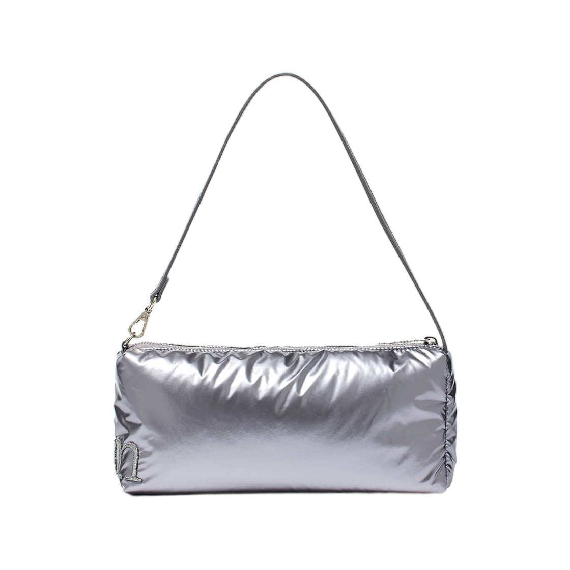 마뗑킴 글로시 로고 스티치 미니 숄더백 실버
