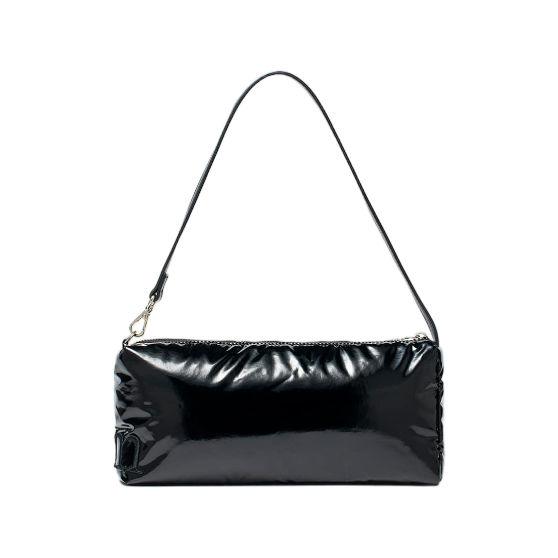 마뗑킴 글로시 로고 스티치 미니 숄더백 블랙