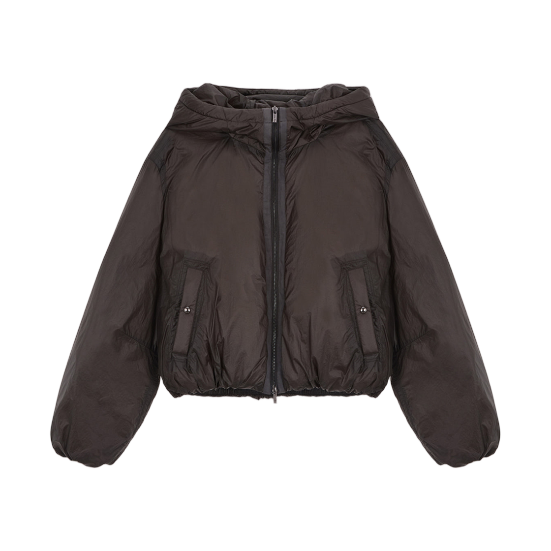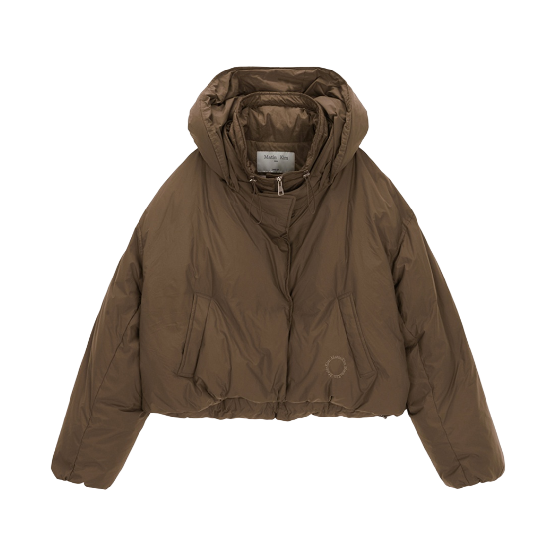 (W) 마뗑킴 스몰 로고 볼륨 다운 점퍼 다크 브라운
