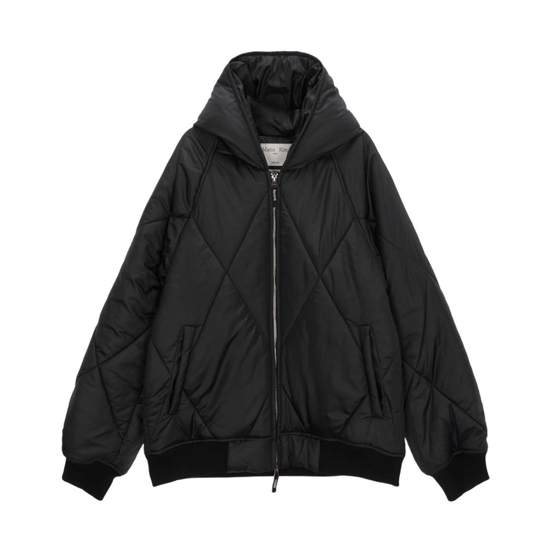 (W) 마뗑킴 블랙 타이포 퀼팅 후드 점퍼 블랙