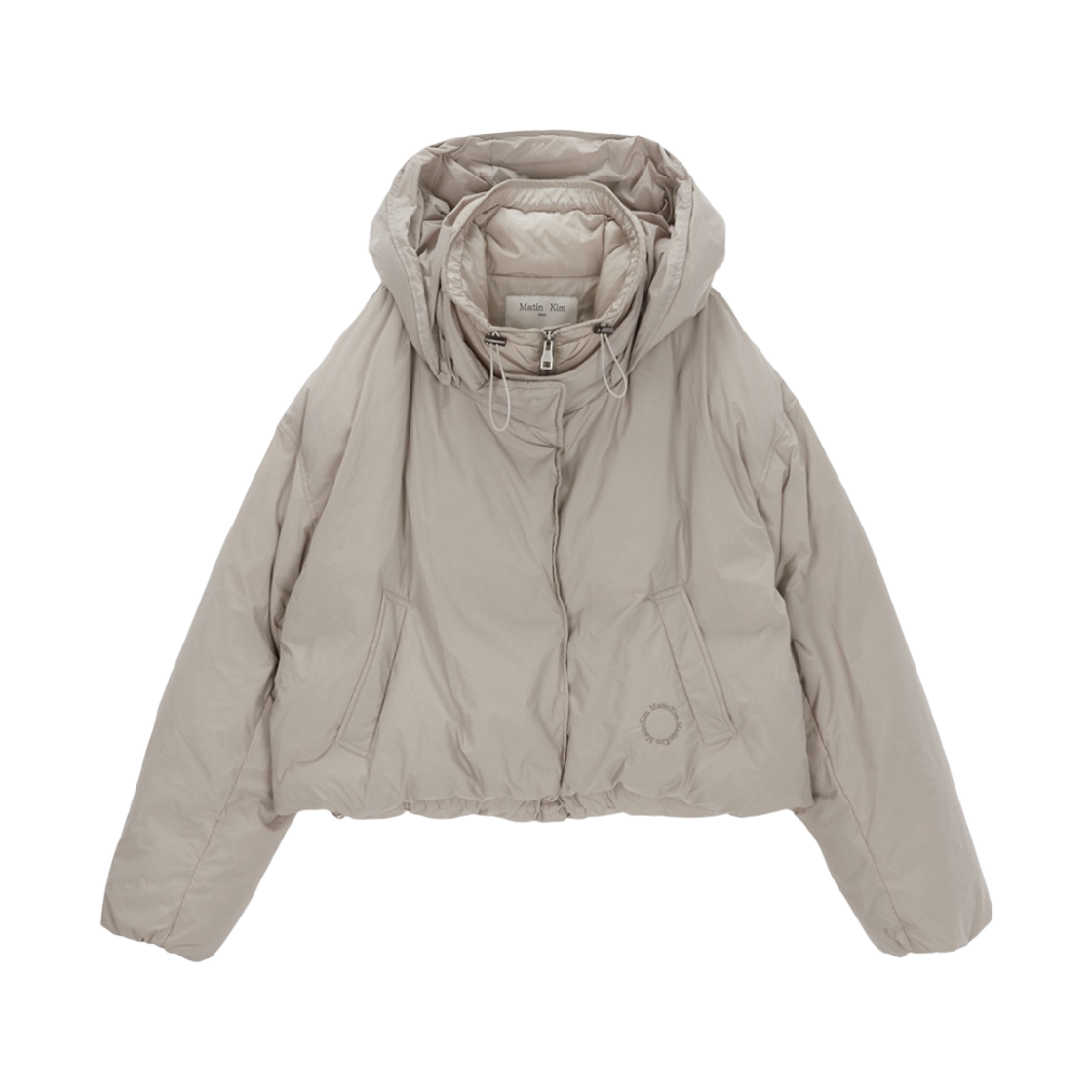 (W) 마뗑킴 백 로고 후디 숏 다운 점퍼 베이지