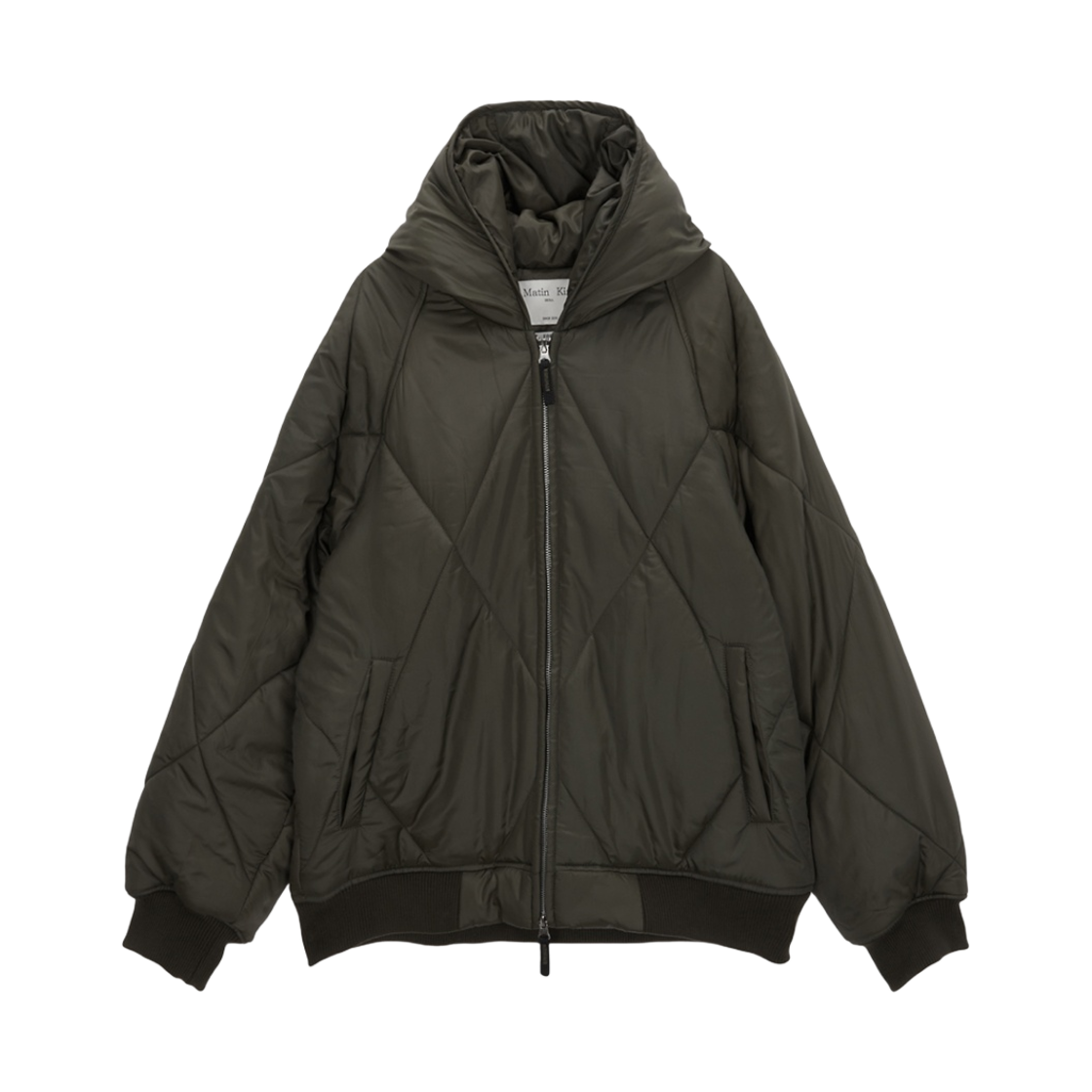 (W) 마뗑킴 블랙 타이포 퀼팅 후드 점퍼 카키