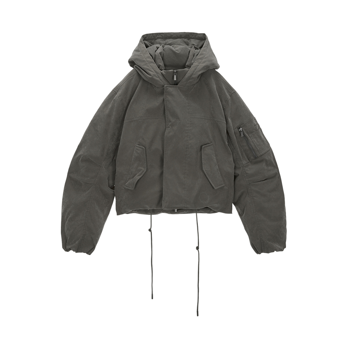 (W) 마뗑킴 백 로고 후디 숏 다운 점퍼 차콜