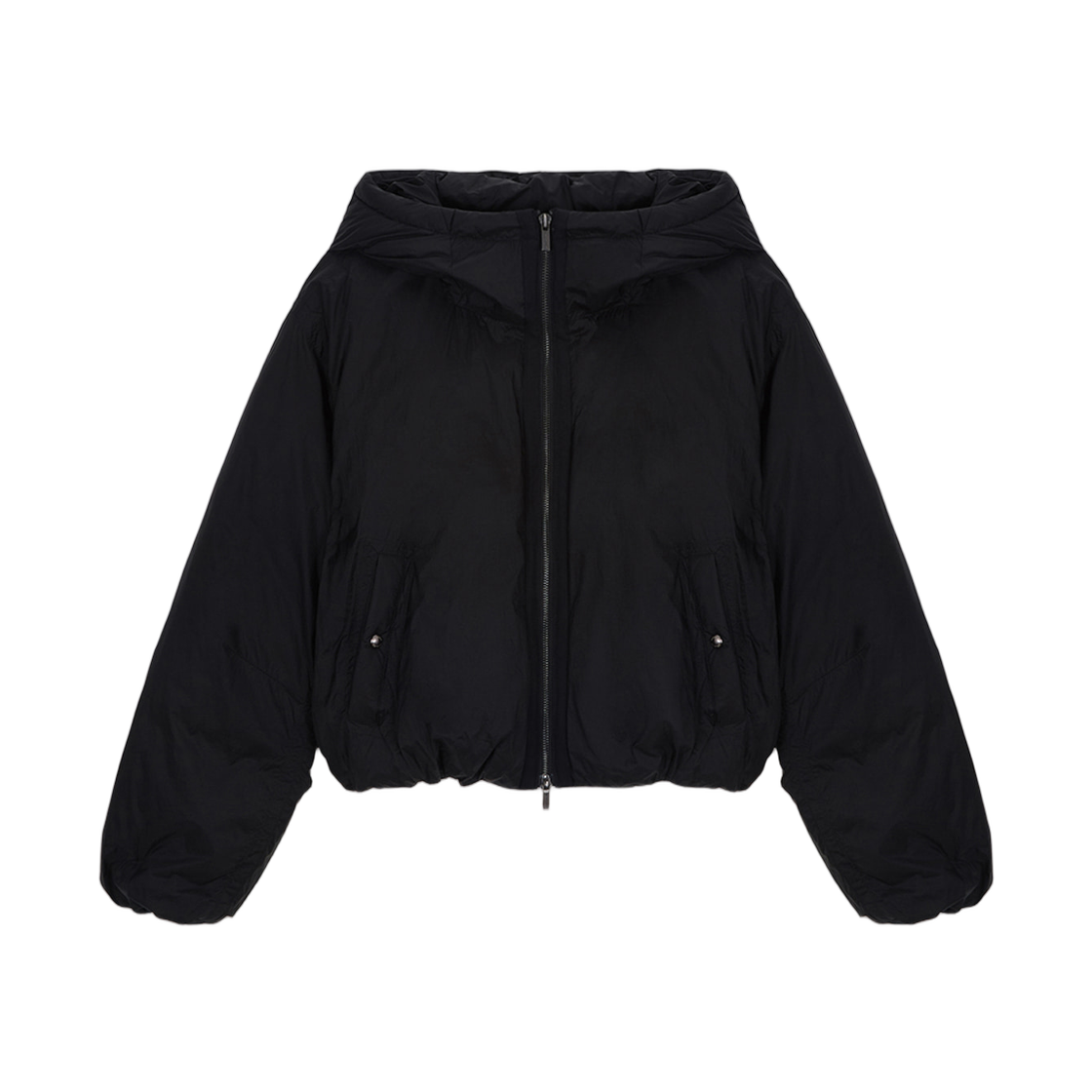 (W) 마뗑킴 백 로고 후디 숏 다운 점퍼 블랙