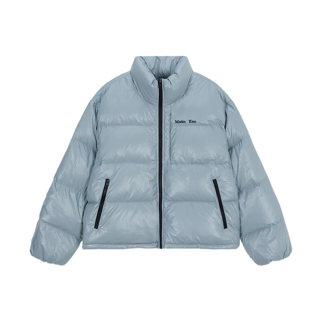 마뗑킴 로고 아플리케 글로시 다운 점퍼 차콜