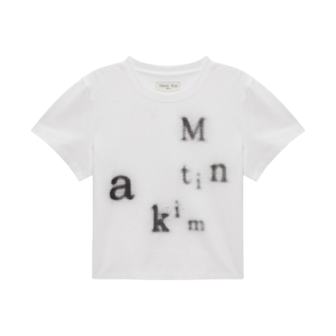(W) 마뗑킴 더스티 타이포 그래픽 크롭 탑 화이트