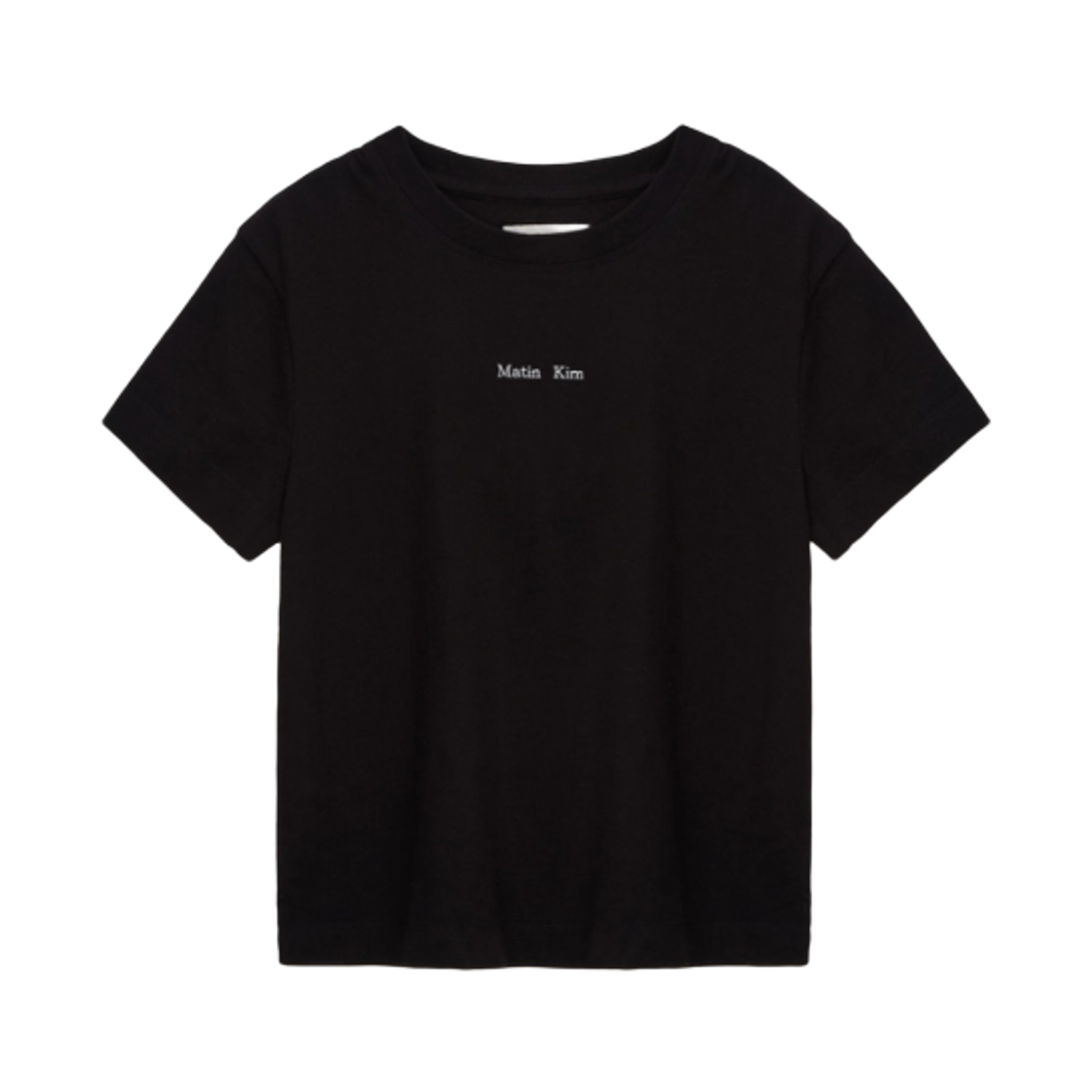 (W) 마뗑킴 마뗑 자수 로고 크롭 탑 블랙