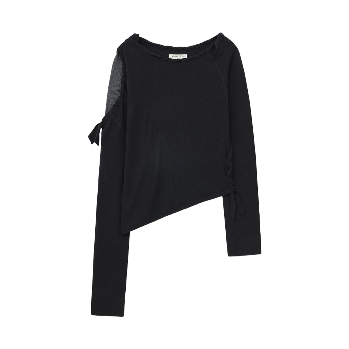 (W) 마뗑킴 로고 커티드 크롭 탑 블랙