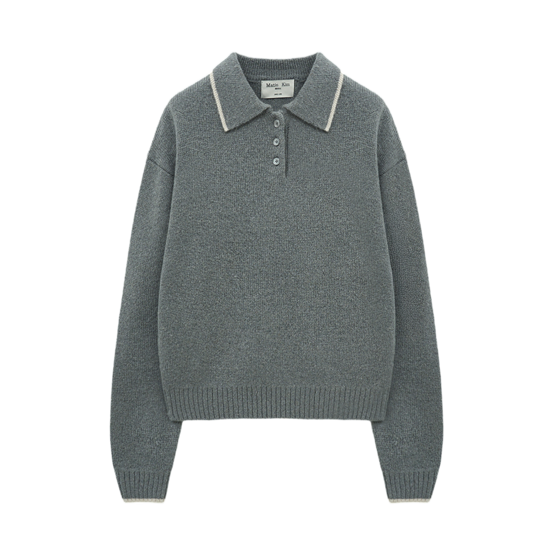 마뗑킴 백 로고 칼라 니트 탑 그레이