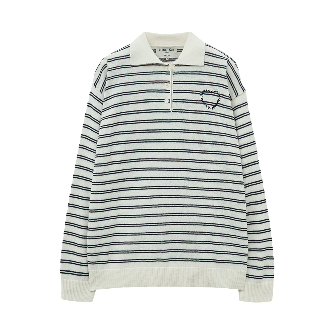 (W) 마뗑킴 하트 로고 칼라 스트라이프 풀오버 아이보리