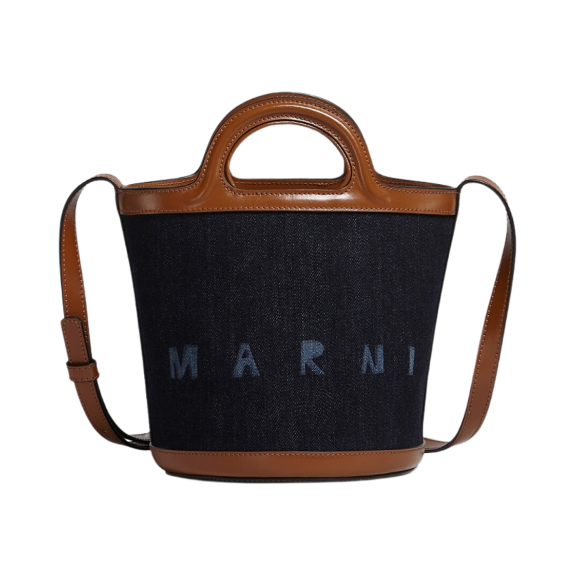 마르니 데님 앤 레더 트로피칼리아 미니 버킷백 블루블랙 모카