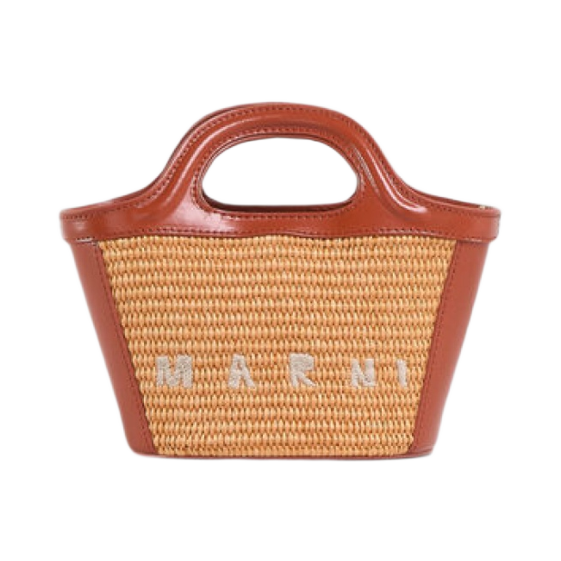 마르니 레더 & 라피아 트로피컬리아 마이크로백 로우 시에나 브라운