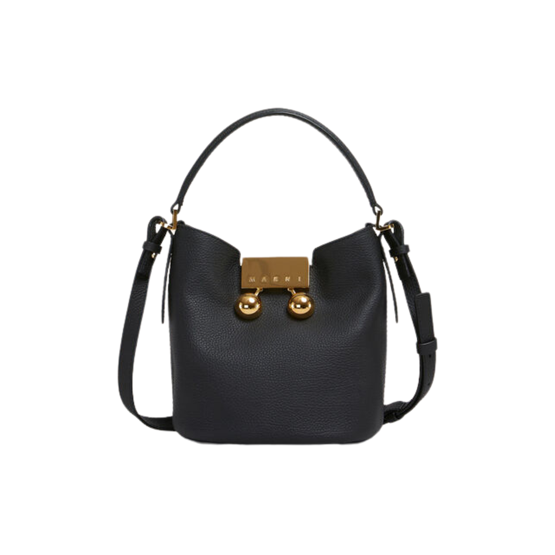 마르니 자카드 로고 스트랩 카프스킨 미디움 트렁크백 블랙
