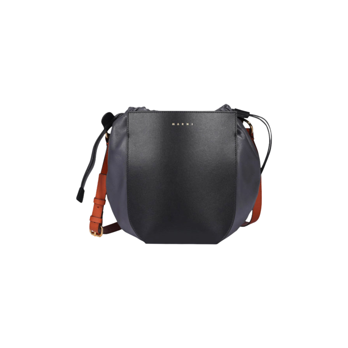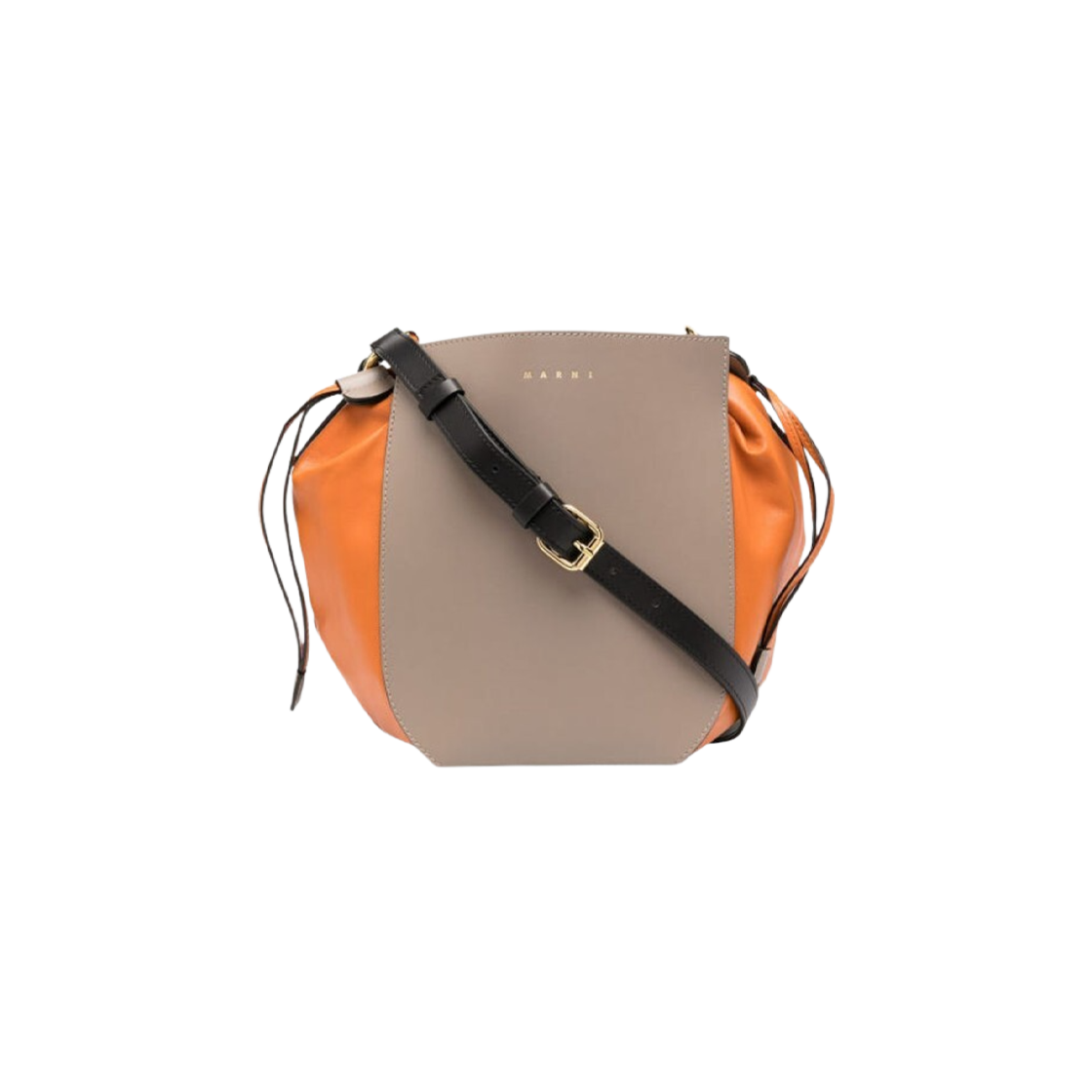 마르니 이어링 컬러블록 투톤 레더 버킷백 숄더백 브라운 베이지