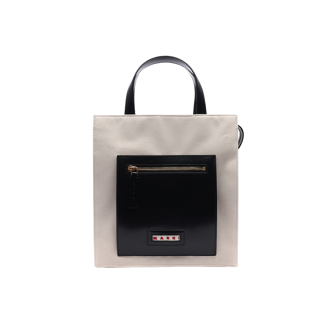 마르니 코튼 레더 토트백 블랙 내츄럴