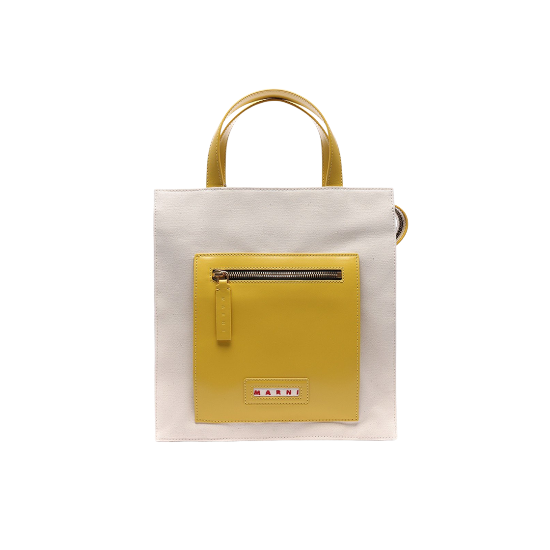 마르니 코튼 레더 토트백 옐로우 내츄럴