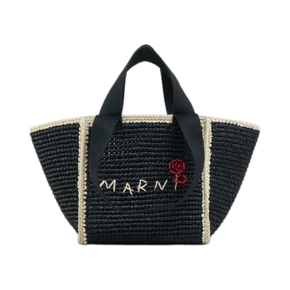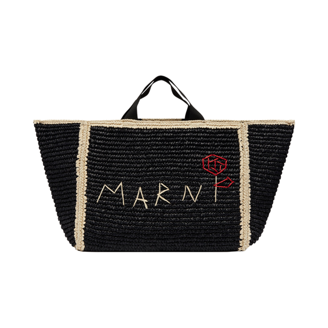 마르니 라피아 이펙트 패브릭 라지 토트백 블랙