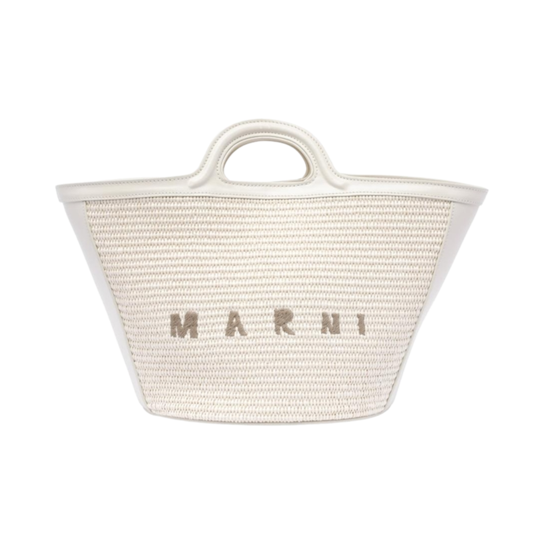 마르니 레더 & 라피아 트로피칼리아 스몰백 화이트