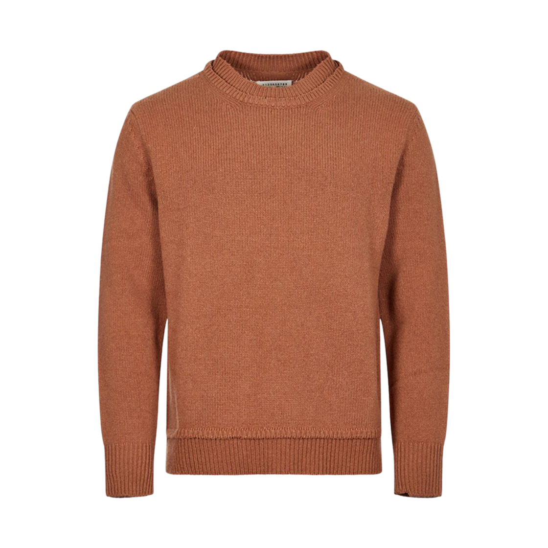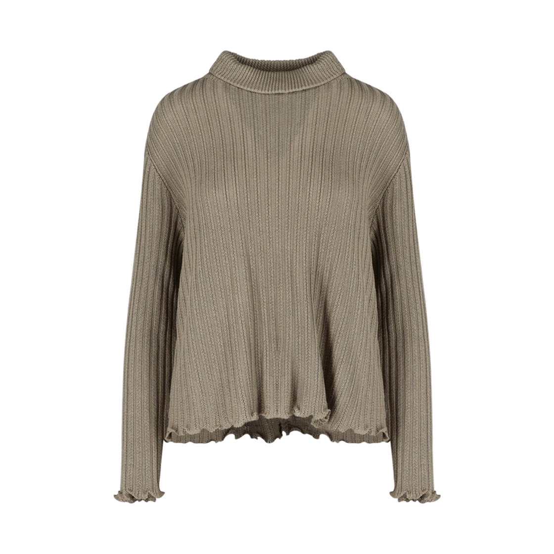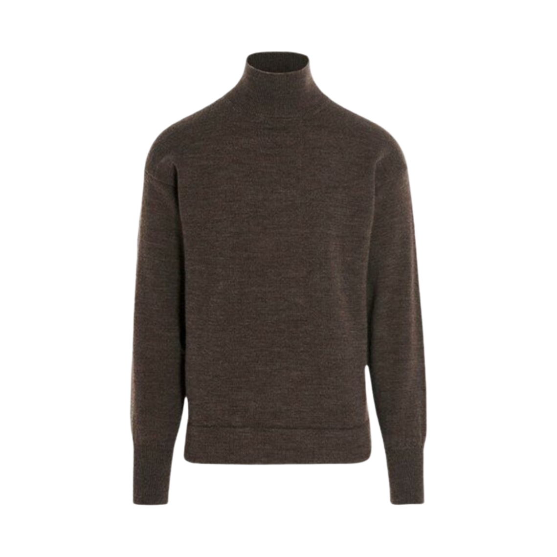 메종 마르지엘라 백 스티치 더블 넥 울 스웨터 브라운