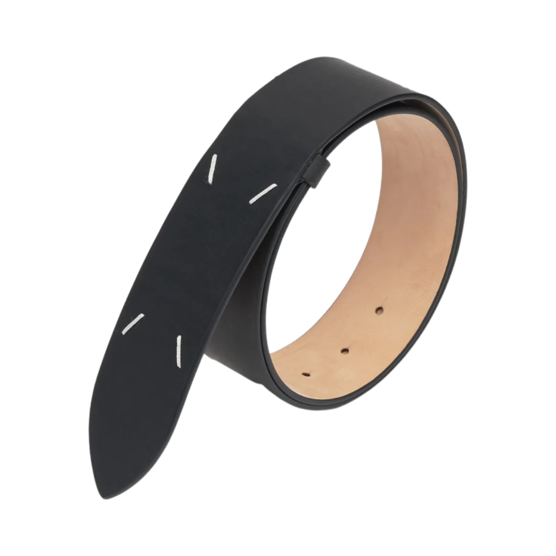 메종 마르지엘라 포 스티치 그레인드 레더 벨트 블랙