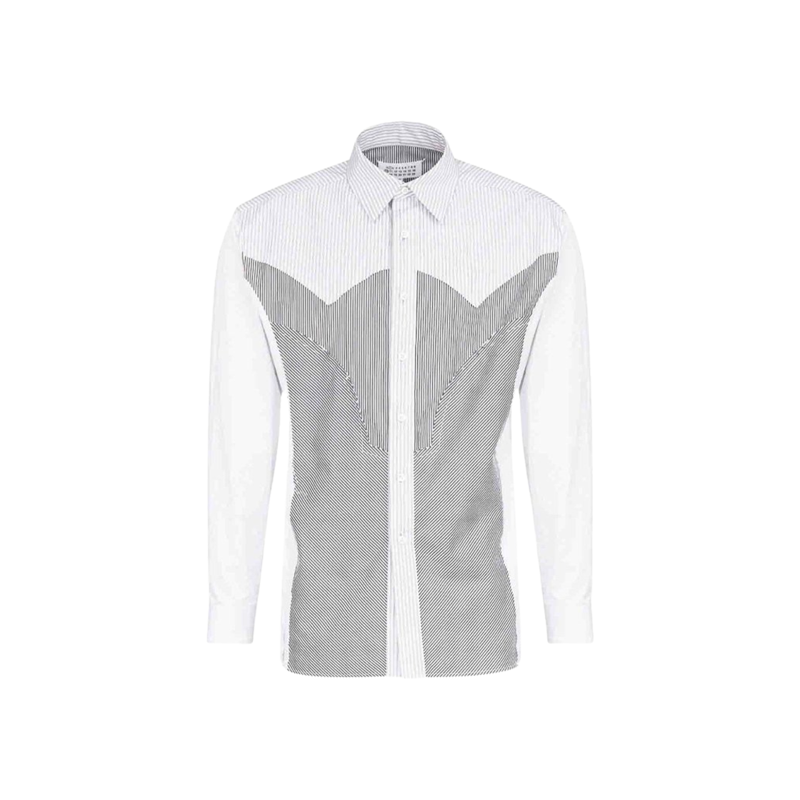메종 마르지엘라 스트라이프 코튼 셔츠 화이트 그레이