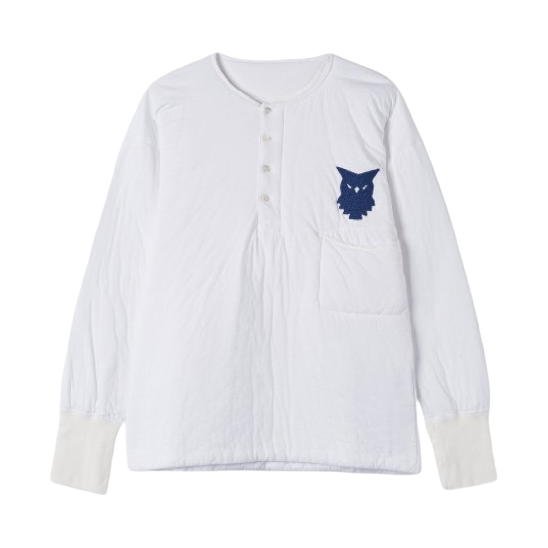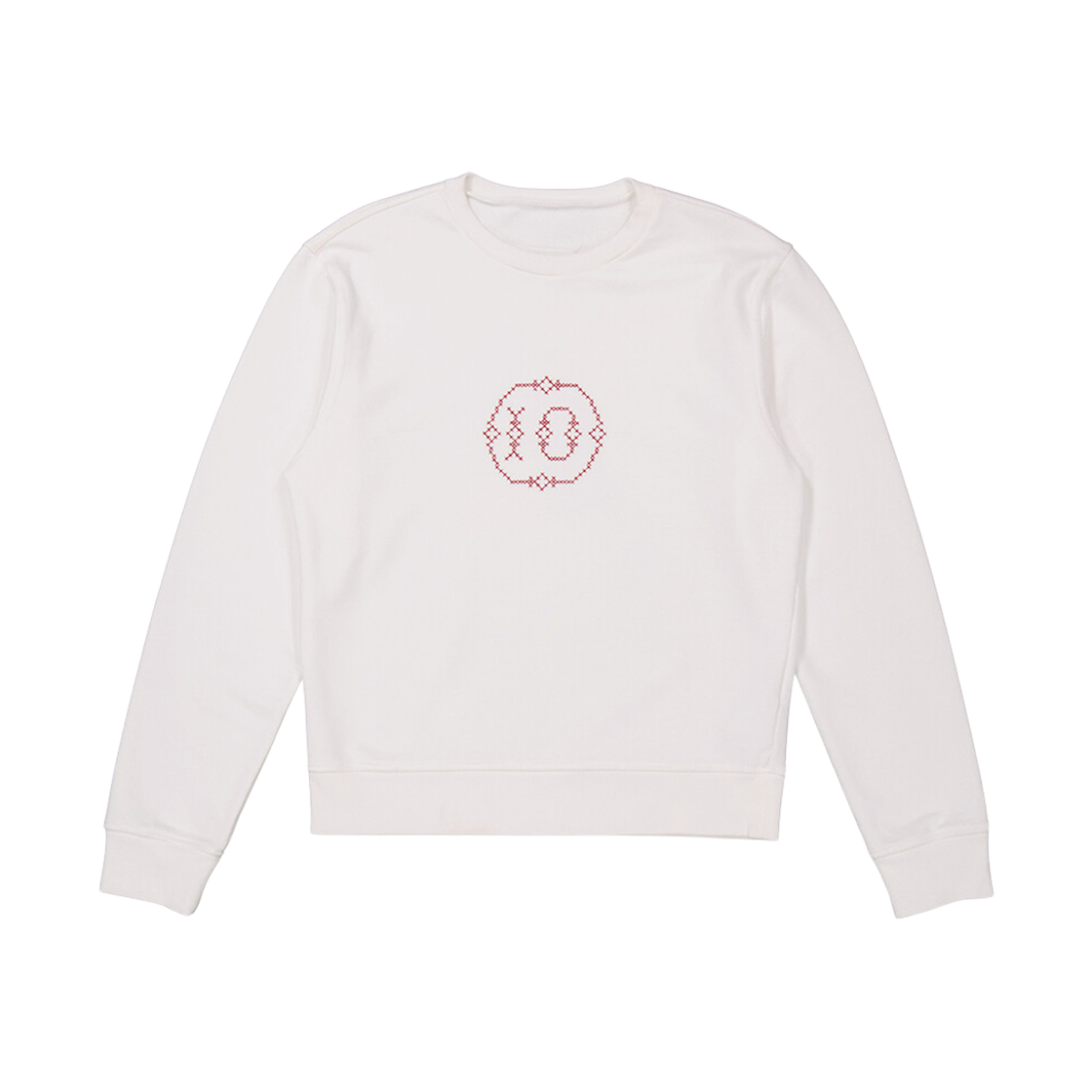 메종 마르지엘라 아울 로고 패딩 이펙트 헨리 넥 스웨트셔츠 화이트